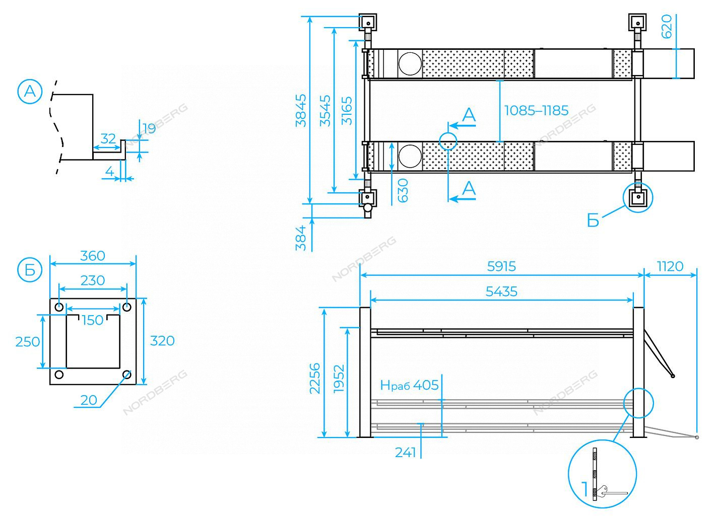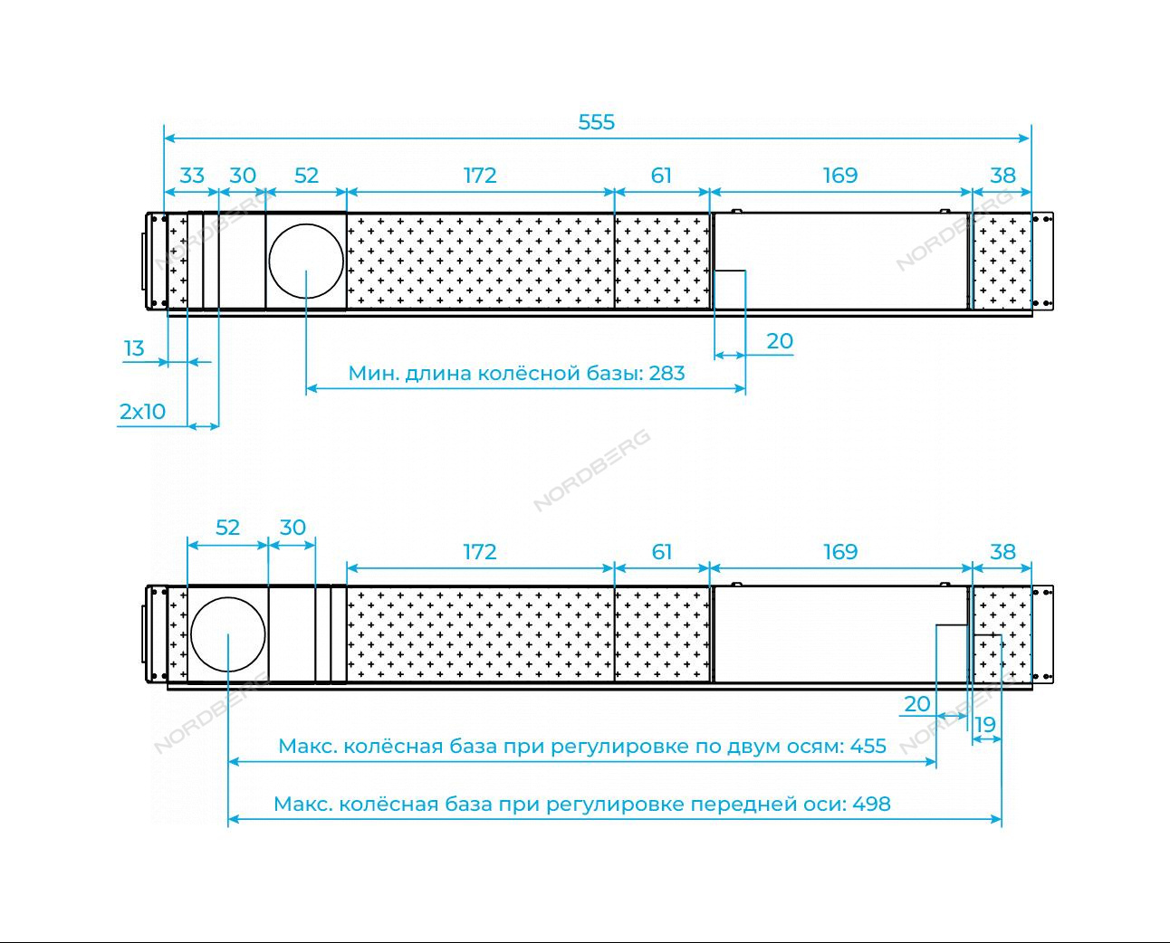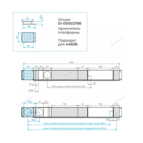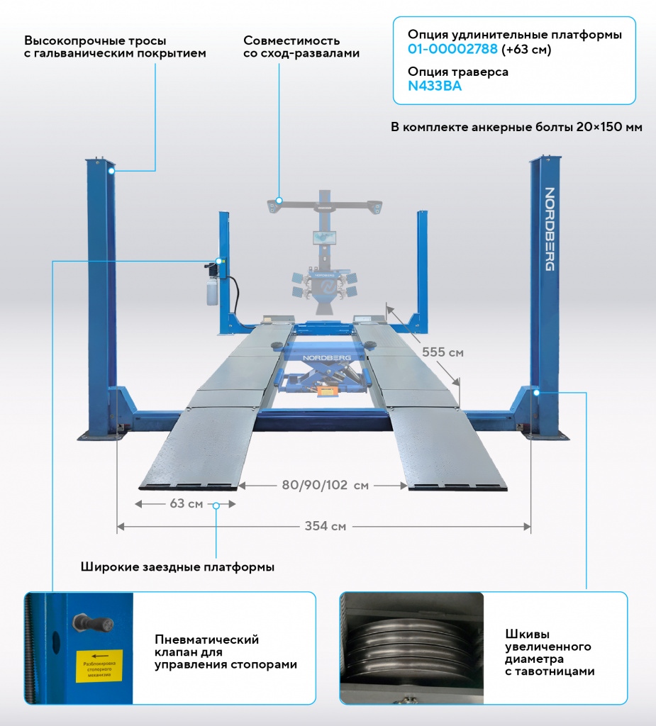 NORDBERG 4465B — четырехстоечный подъёмник грузоподъёмностью 6,5 тонн для развала-схождения, траверса N443BA (опционально).