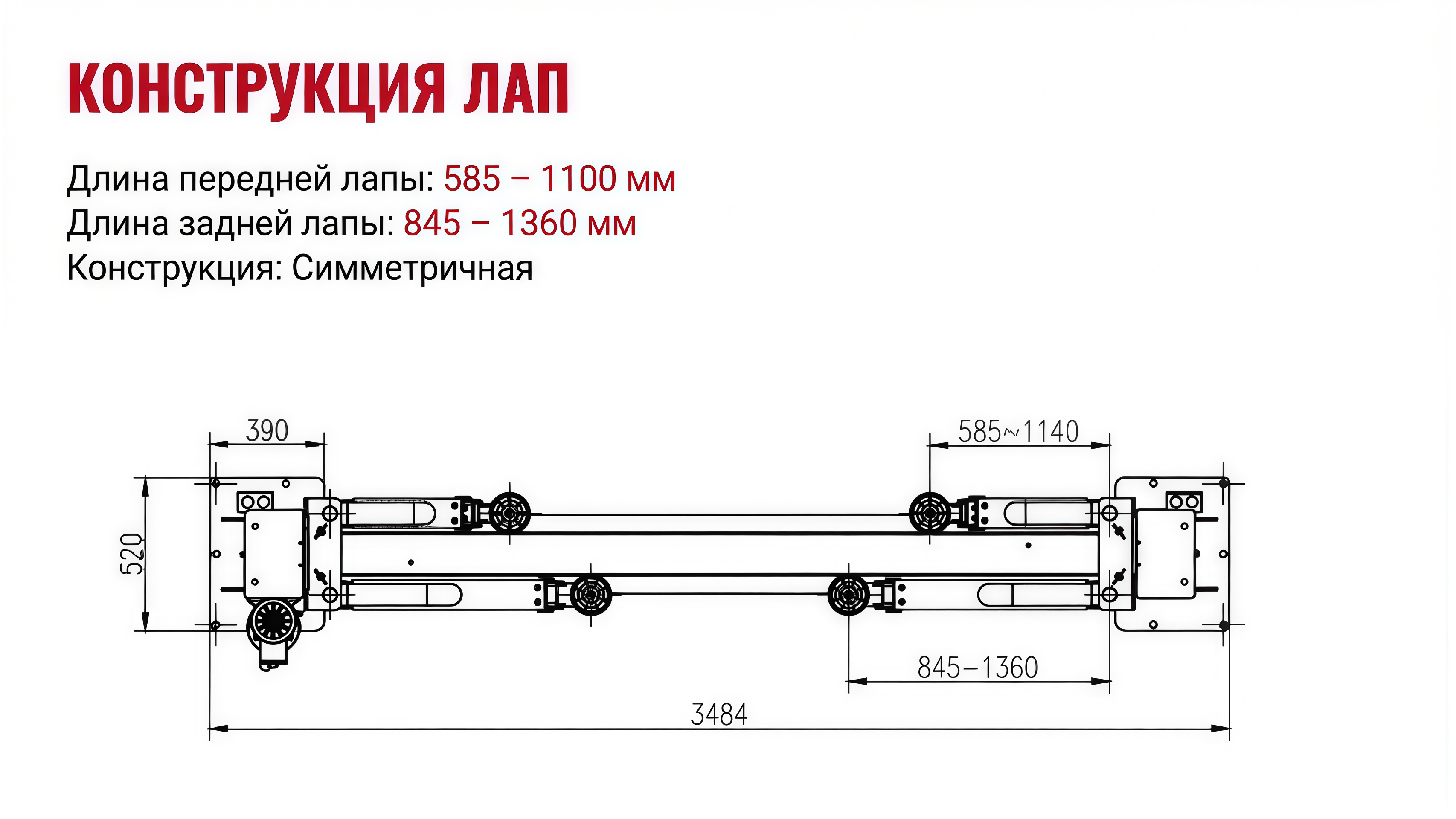 | Конструкция лап | симметричная |