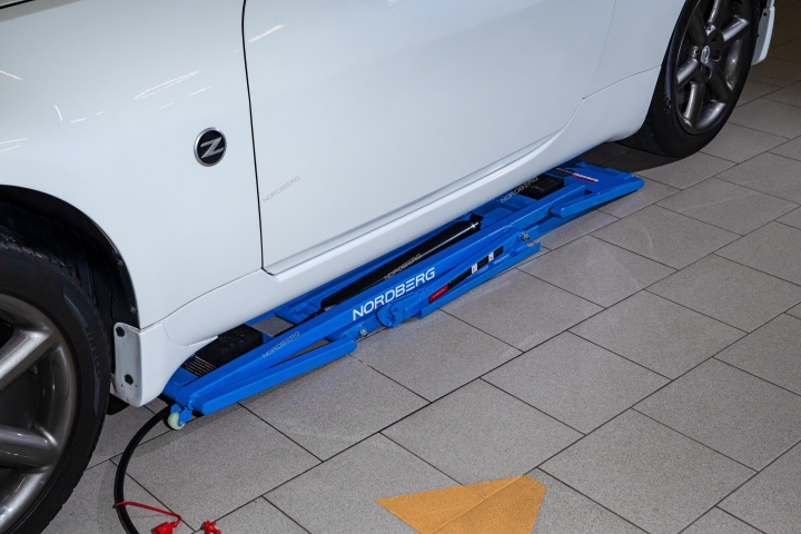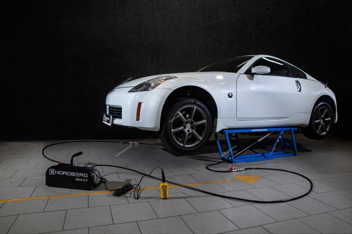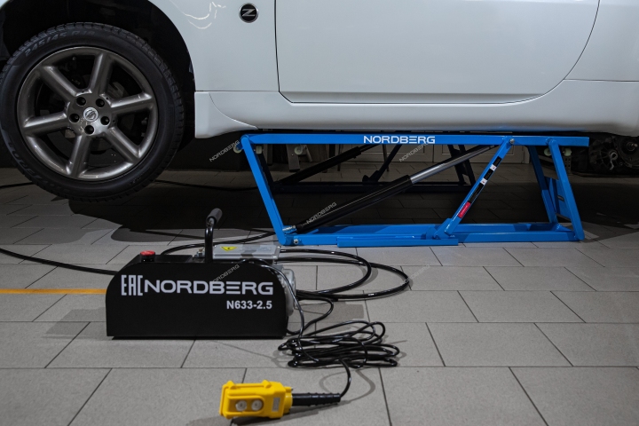 Универсальный подъемник для шиномонтажных мастерских и зоны приемки, может использоваться и как мобильный, без фиксации к полу, так и закрепленным на стационарном посте NORDBERG N633-2.5.