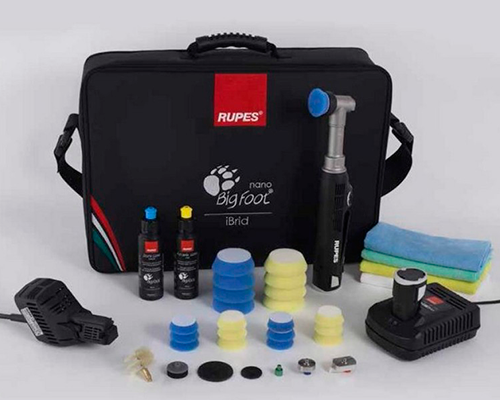 Набор для полировки, шлифовки и чистки поверхностей автомобиля. Включает полировальную машинку, зарядку, батареи и расходные материалы.