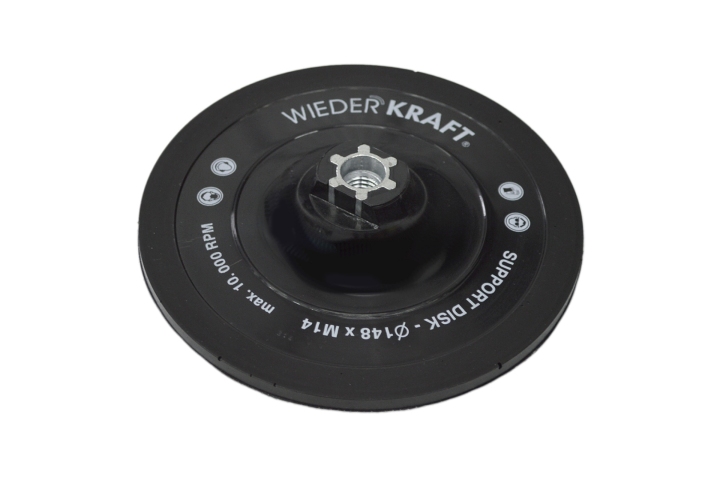 WiederKraft WDK-122401 — диск-подошва 150 мм высокой степени жесткости для полировальных и шлифовальных машинок. Диск крепится на липучку Velcro, сама подошва устанавливается на машинку с помощью крепления M14.
