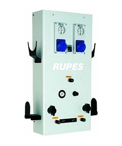 Rupes PT 102A - Многофункциональный настенный терминал для централизованных систем пылеудаления: размеры 220x600x930 мм, манометр с регулятором воздуха, электропитание 220-230В/50Гц, 2 электрические розетки для подключения электроинструмента, 2 разъема для подключения пневмоинструмента (воздух со смазкой), 2 разъема для подключения к очищенному сухому воздуху, по 2 кронштйна для шлангов и инструмента, манометр с регулятором воздуха, двойной соединитель для шлангов Ø29мм.