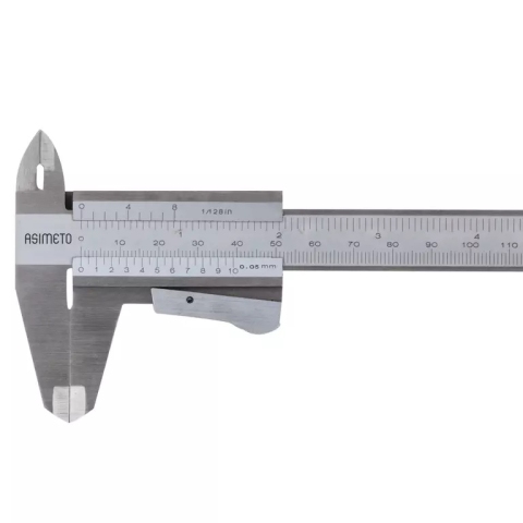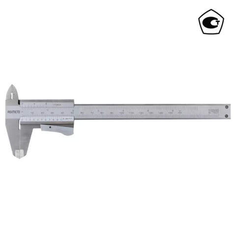 Штангенциркуль нониусный ASIMETO 0351-08-04 серии 351 из нержавеющей стали с губками для внутренних и наружных замеров и плоским глубиномером. Предназначен для измерения линейных размеров малогабаритных деталей.