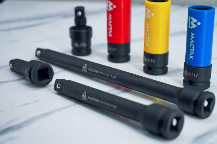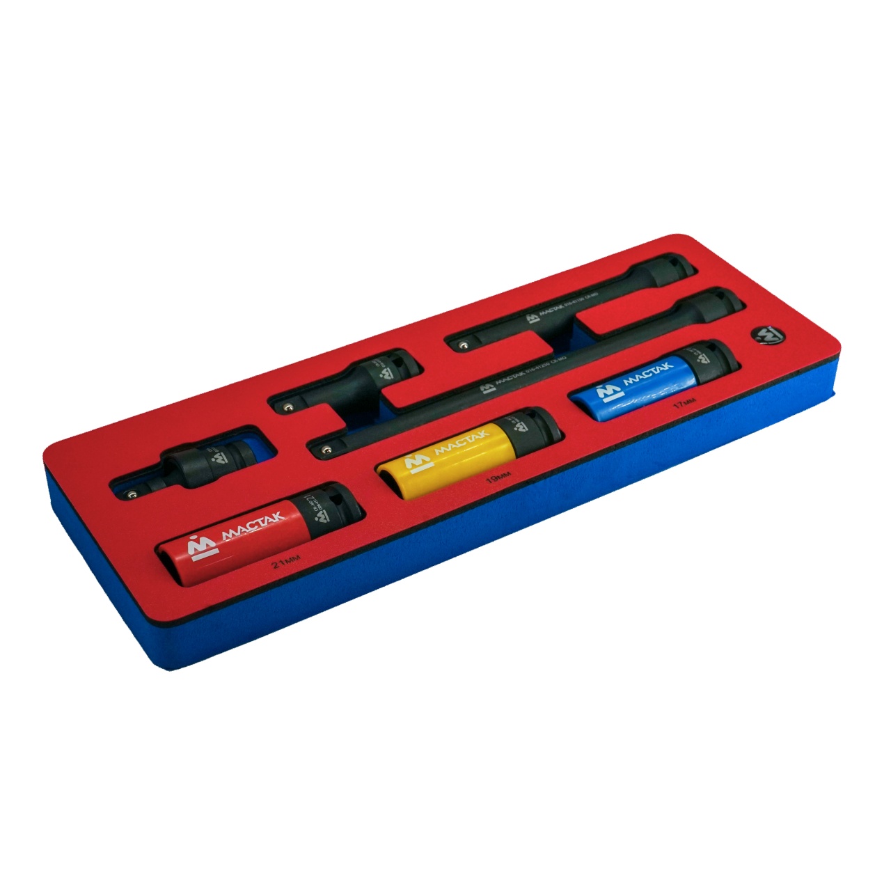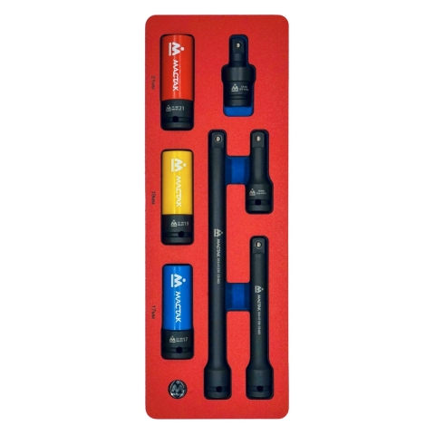 Набор ударных глубоких торцевых головок и удлинителей 1/2", 17, 19, 21 мм, ложемент, 7 предметов МАСТАК 5-064517.