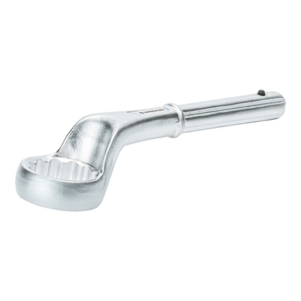 Рабочий профиль из 12 граней подходит к головкам болтов и гайкам как 6-, так и 12-гранного профиля. Шариковый фиксатор надежно фиксирует рукоятку-удлинитель на ключе, исключая ее соскальзывание.