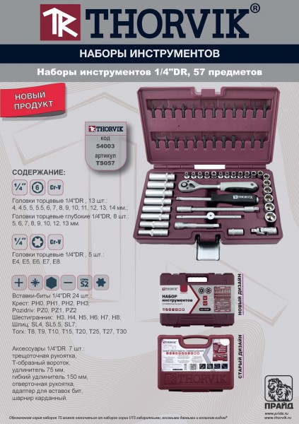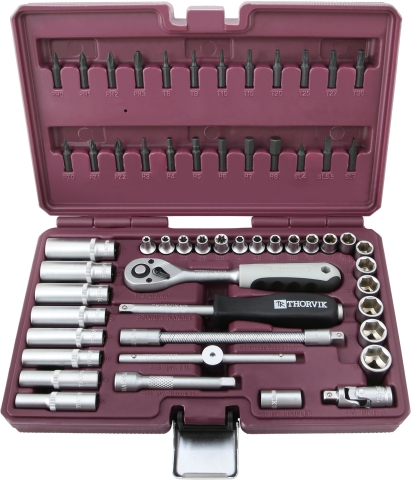 Инструментальные наборы Thorvik - это высокое качество изделий, входящих в состав наборов, удобные прочные кейсы для хранения, оптимальная комплектация позволяющая удовлетворить потребность мастера при обслуживании техники и обеспечить всем необходимым рабочее место при производстве комплексных слесарно-монтажных или механосборочных работ. Наборы Thorvik имеют ударопрочный морозоустойчивый кейс с надежными металлическими замками, фосфатированное покрытие вставок бит обеспечит дополнительную стойкость к коррозии.