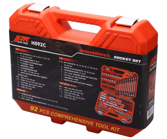 Набор инструментов JTC-H092C 1/4", 1/2" 6-гранный (в кейсе) 92 предмета.