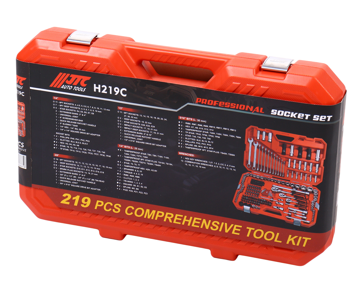 Набор инструментов JTC-H219C 1/4", 3/8", 1/2" 6-гранный (в кейсе) 219 предметов.