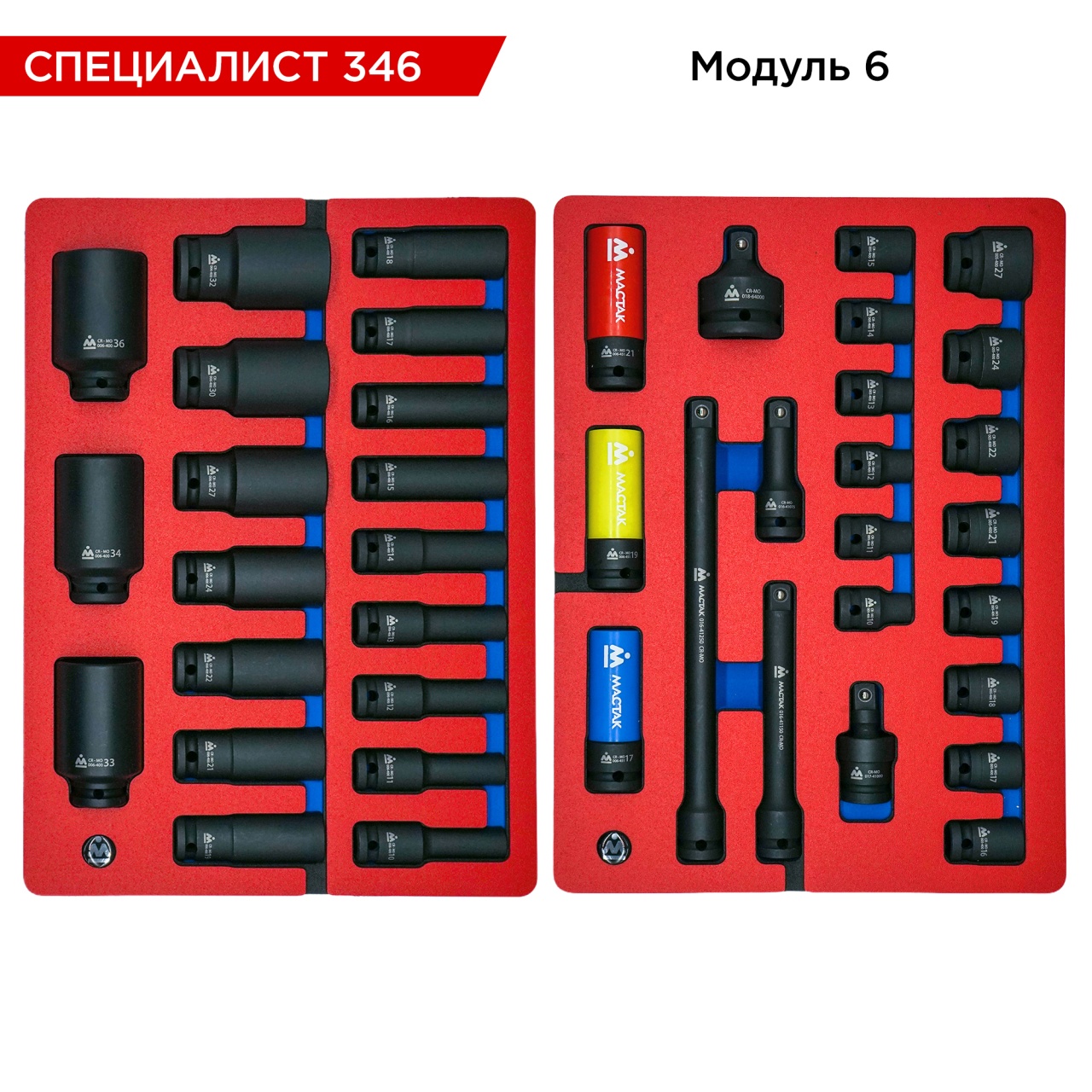 Набор инструментов 346 предметов, "СПЕЦИАЛИСТ 346", для тележки, 17 ложементов, МАСТАК 5-00346.