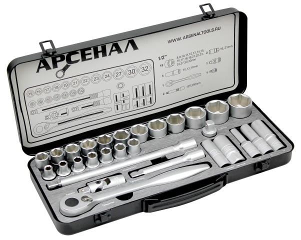 Головки: 8; 9; 10; 11; 12; 13; 14; 15; 16; 17; 18; 19; 21; 22; 23; 24; 27; 30; 32 мм;