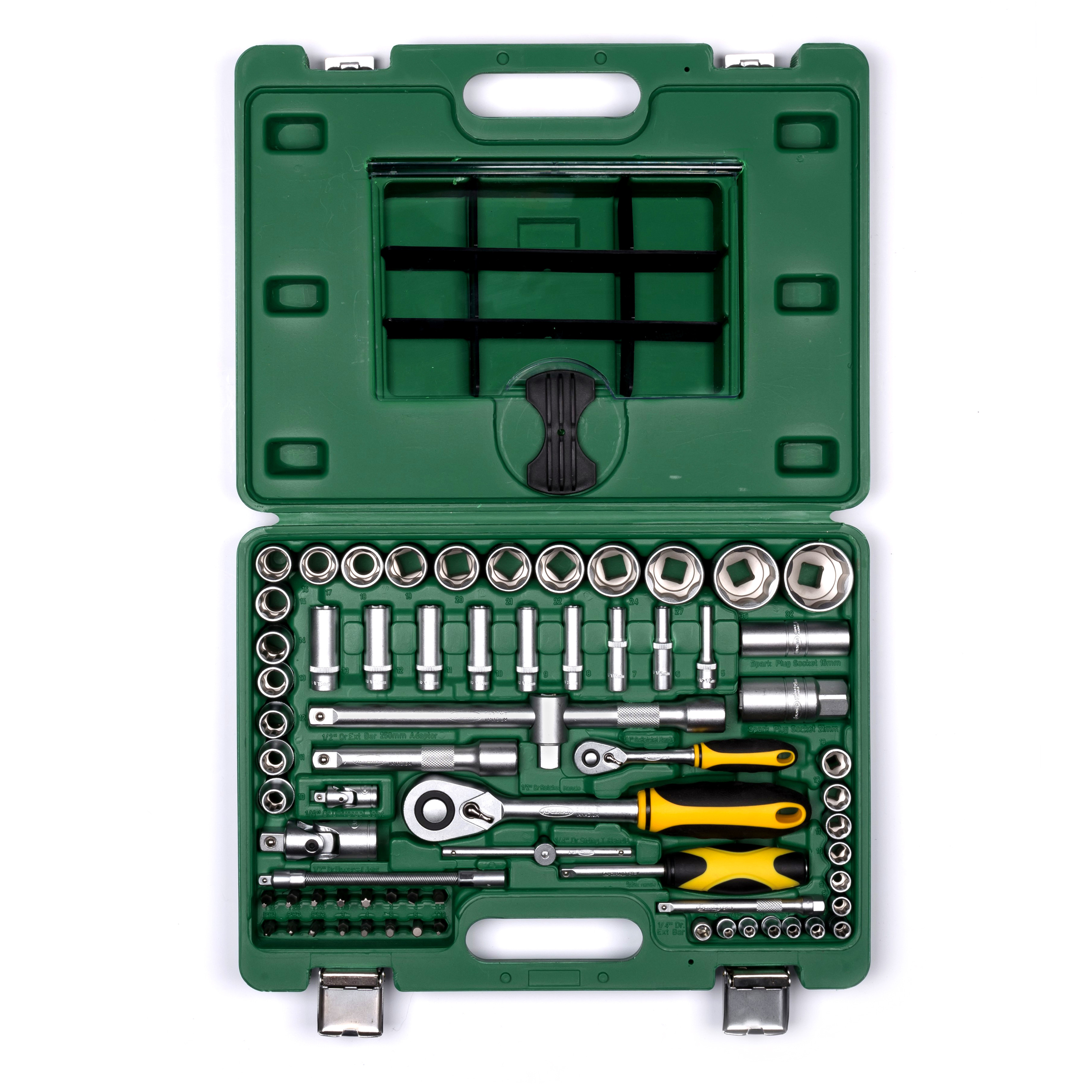 Набор инструментов 68 предметов AUTO Арсенал AA-C1412L68 пригодится для ремонта и обслуживания автомобиля в домашних условиях. Помимо комплекта инструментов, имеет органайзер, который позволит доукомплектовать набор под себя. Прочный кейс из ударопрочной пластмассы. Наборы инструментов Арсенал имеют пожизненную гарантию.