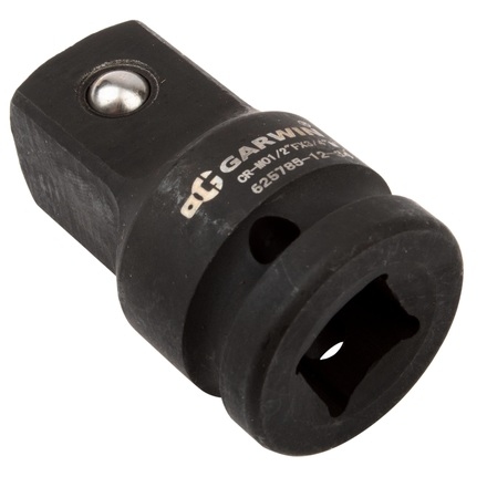 Переходник ударный GARWIN PRO 625785-12, с шариковым фиксатором. Применяется для передачи крутящего момента на торцевые головки от пневматического или электрического инструмента ударного действия. Используется в ситуациях, когда размер приводного вала не соответствует посадочному квадрату нужной головки. Размер: “мама” - 1/2 дюйма, “папа” - 3/4 дюйма.