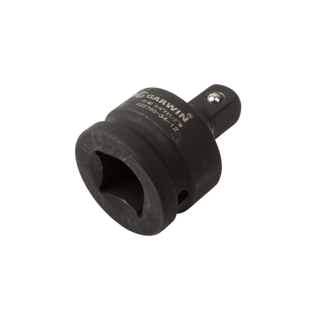 Переходник ударный GARWIN PRO625785-34, с шариковым фиксатором. Применяется для передачи крутящего момента на торцевые головки от пневматического или электрического инструмента ударного действия. Используется в ситуациях, когда размер приводного вала не соответствует посадочному квадрату нужной головки. Размер: “мама” - 3/4 дюйма, “папа” - 1/2 дюйма.
