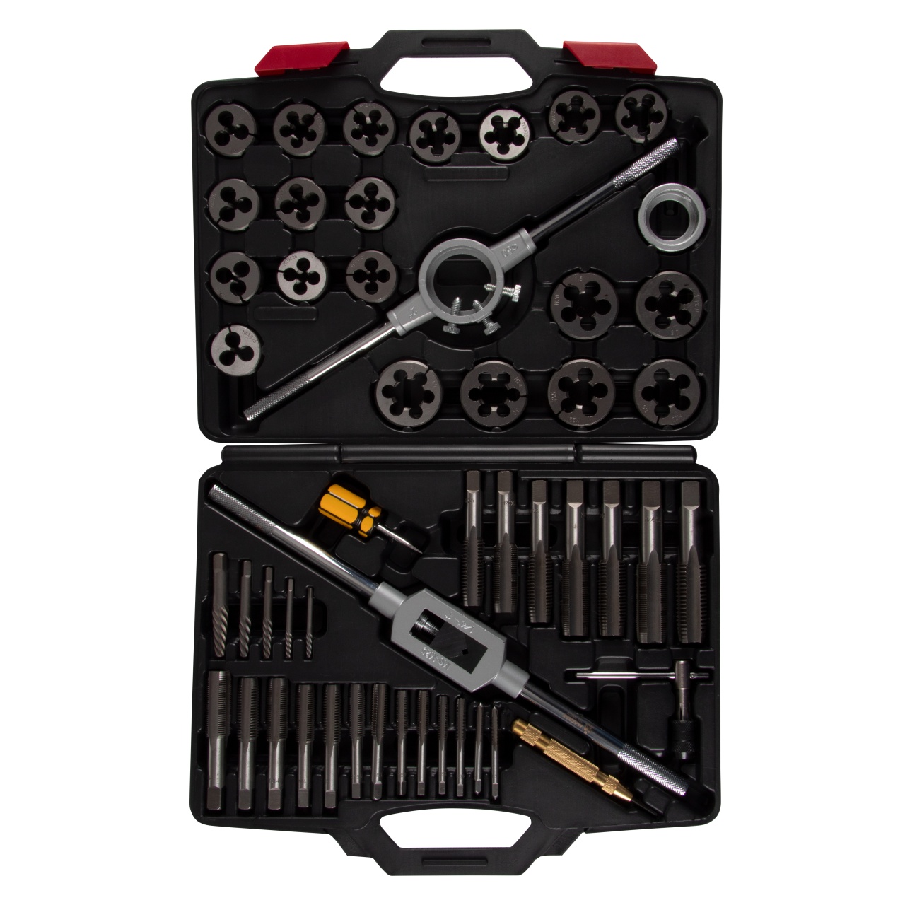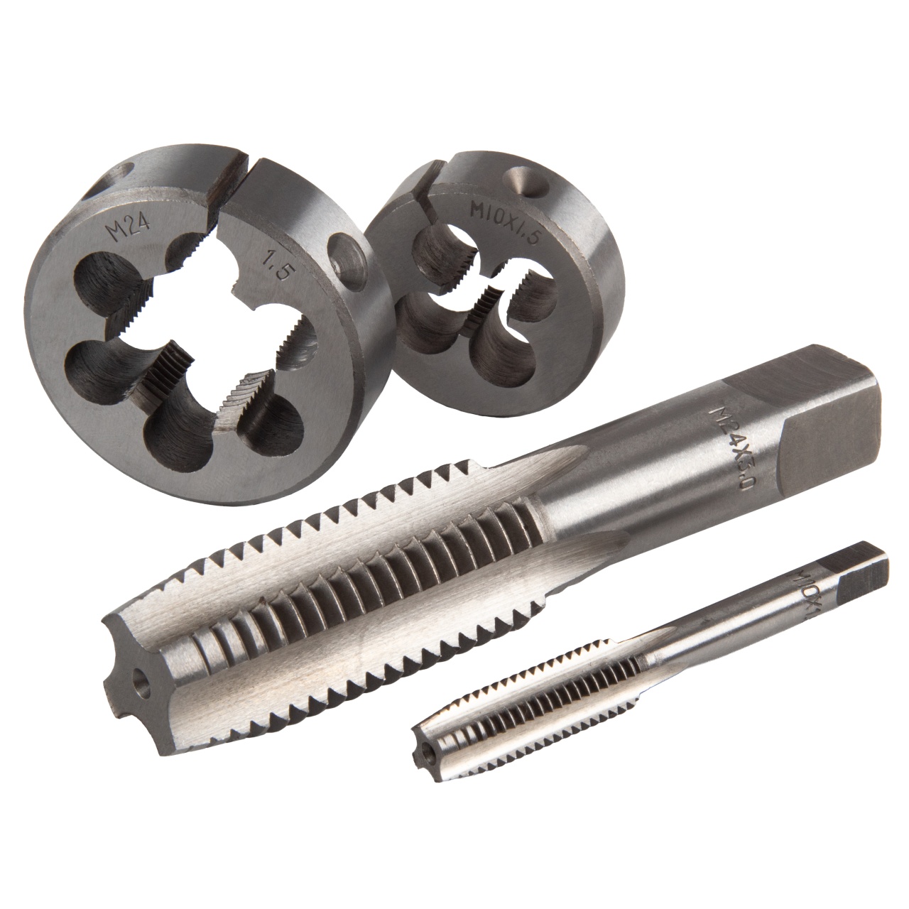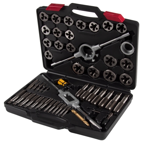 Материалы – инструментальная быстрорежущая сталь SK5, сталь Cr-V, алюминий, латунь, пластик PE-HD (кейс);