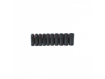 Набор торцевых ударных головок Sumake SIS-4401 имеют 6 граней и посадочный размер для головки (квадрат) - 1/2 дюйма, набор состоит из 10 штук головок разного размера: 11, 12, 13, 14, 16, 17, 19, 21, 22, 24 мм.