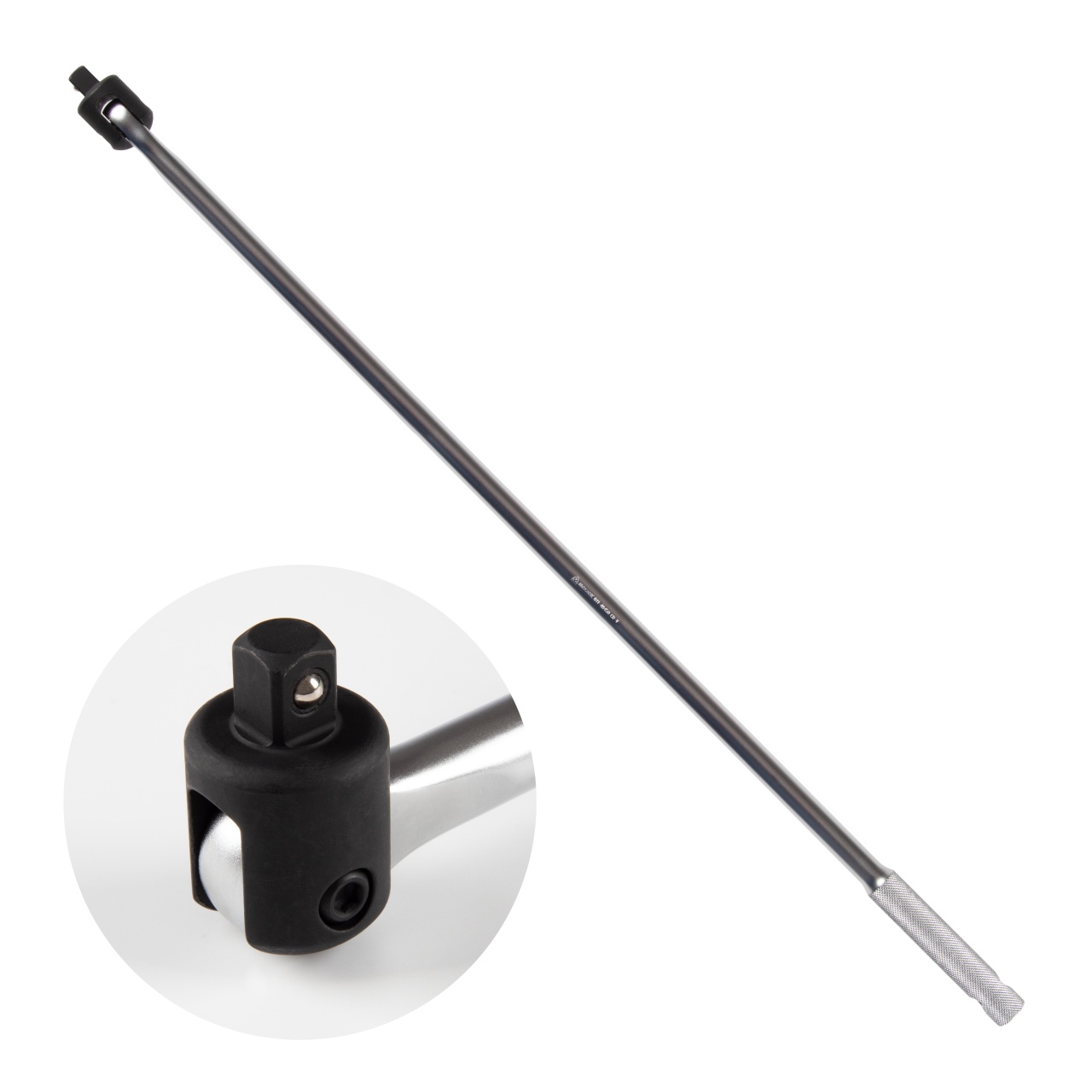 Шарнирный механизм, позволяющий вращать головку на 180 градусов, открывает возможности для работы в труднодоступных местах, где прямой доступ затруднён или невозможен. Вороток изготовлен из инструментальной легированной стали, корпус имеет хромированное матовое покрытие, оснащён рукоятью с двойной Х-типа противоскользящей насечкой и отверстием для подвеса в рабочей зоне на стенде или верстаке.