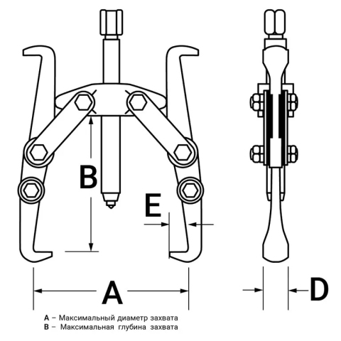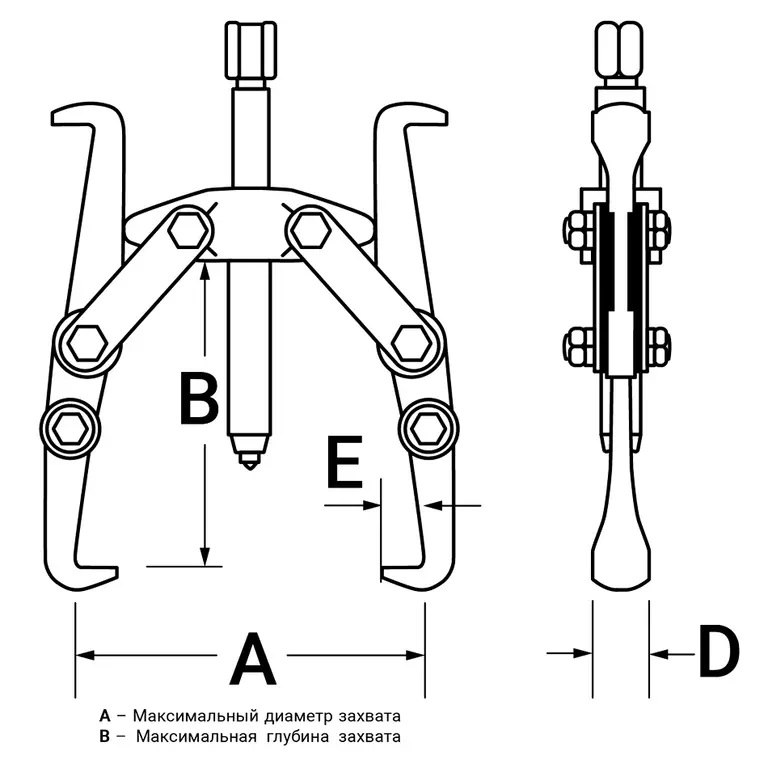 Кованные лапы съемника из прочной инструментальной стали, устойчивой к механическим нагрузкам и коррозии обеспечивают долгий срок службы. Закаленный винт способен выдерживать высокие нагрузки.
