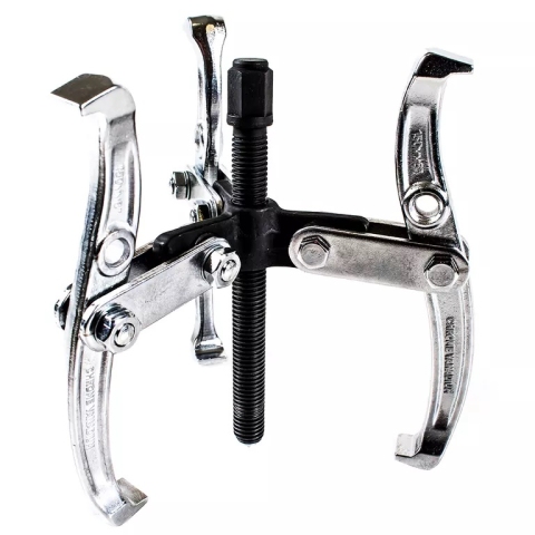 Поворотные лапы имеют переставляемые крюки-захваты, что дает возможность как внешнего, так и внутреннего захвата деталей. По сравнению с двухлапыми съемниками, трехлапые дают более плотный захват детали.