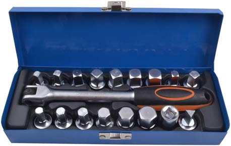 Набор для откручивания сливных пробок картеров, 18 предметов.